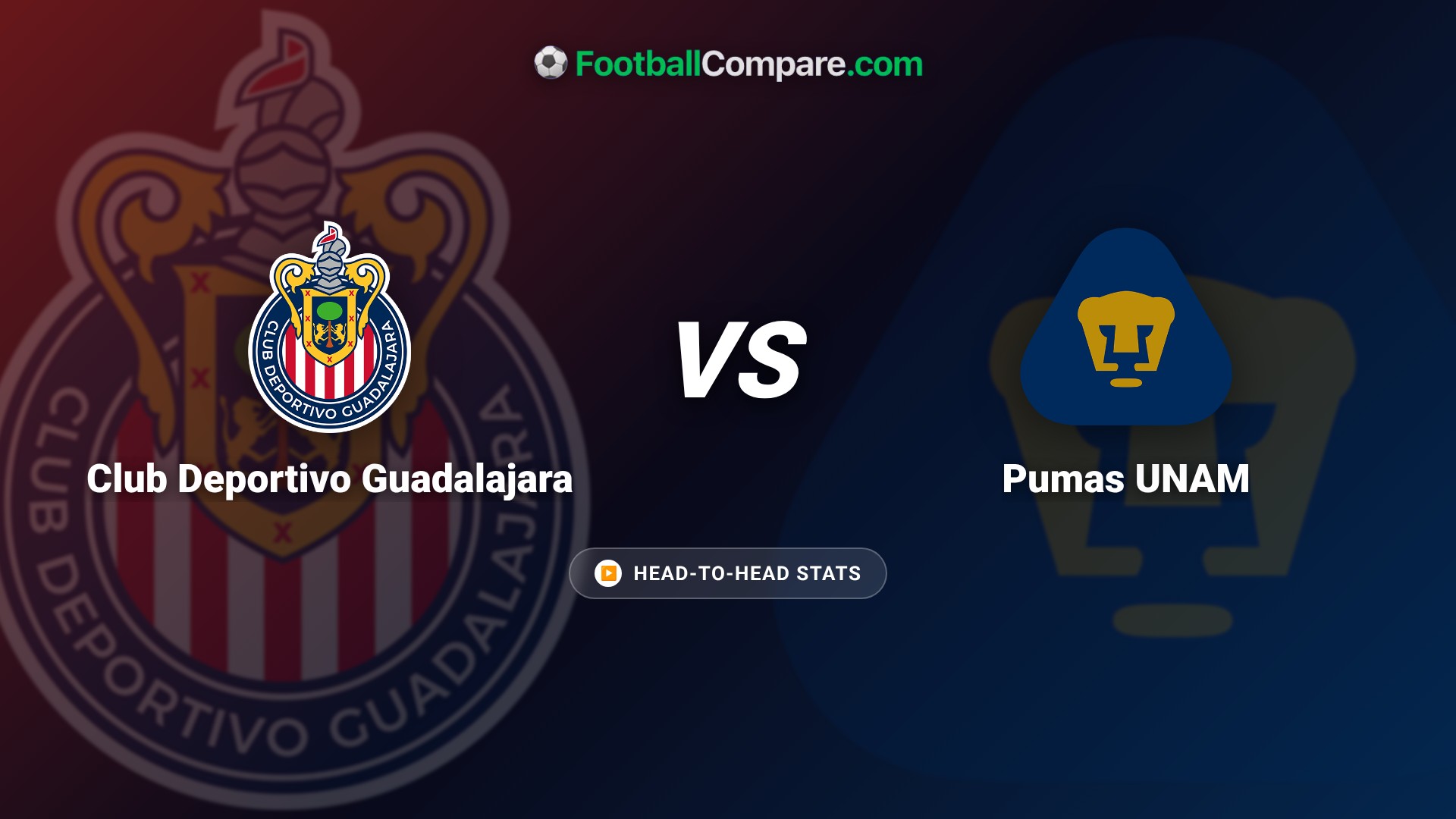 Head to Head record favors CD Guadalajara vs Pumas stats. Chivas leads across most measures.