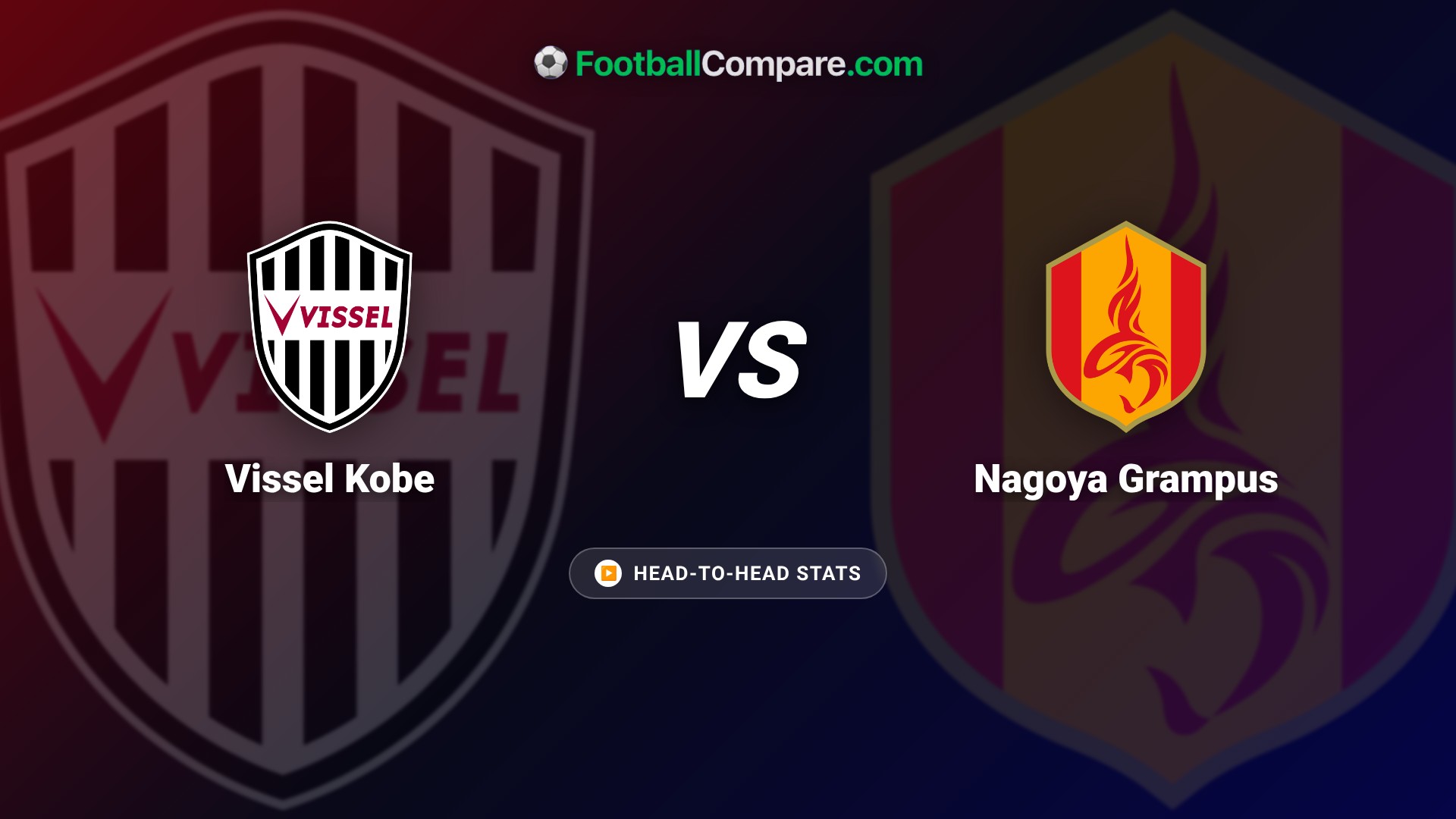 Check the Vissel Kobe vs Nagoya Grampus stats. Kobe leads with 12 H2H wins vs Grampus. Nagoya trails at 10.