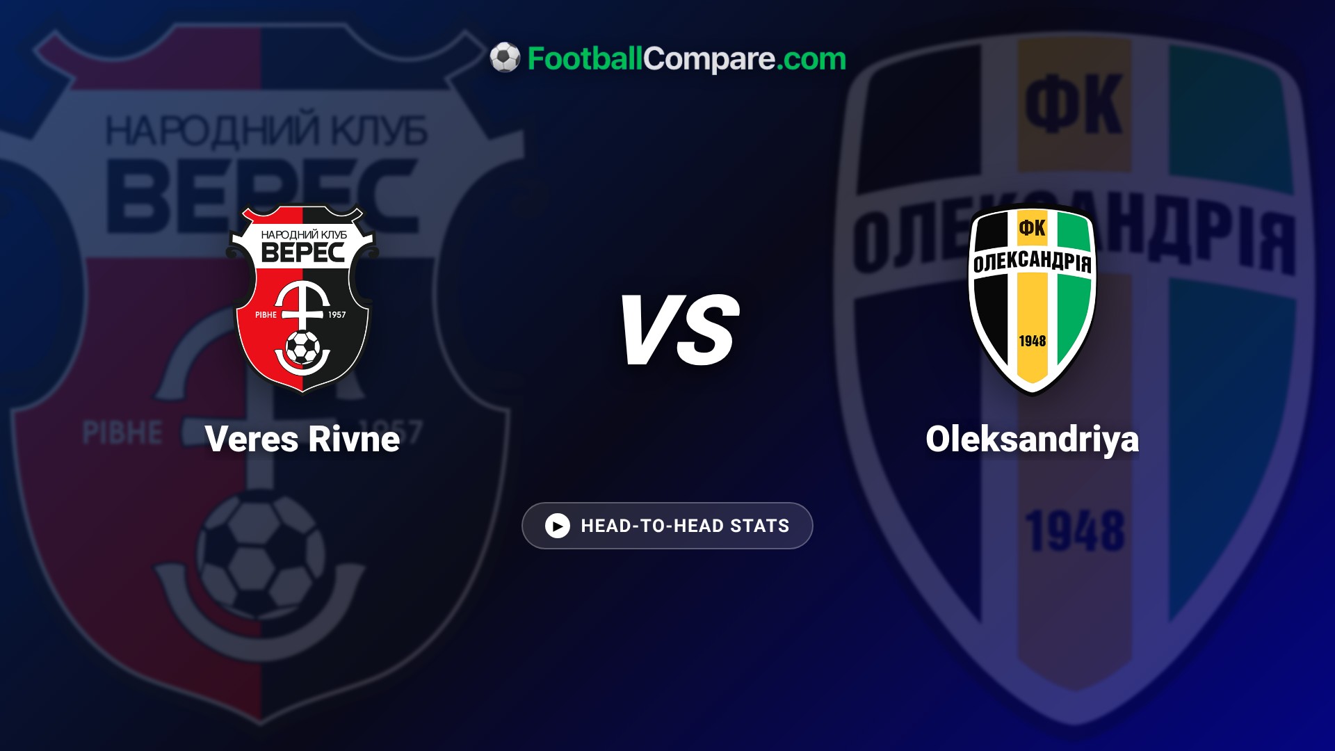 Veres Rivne vs Oleksandriya stats show Oleksandriya's slight lead overall.